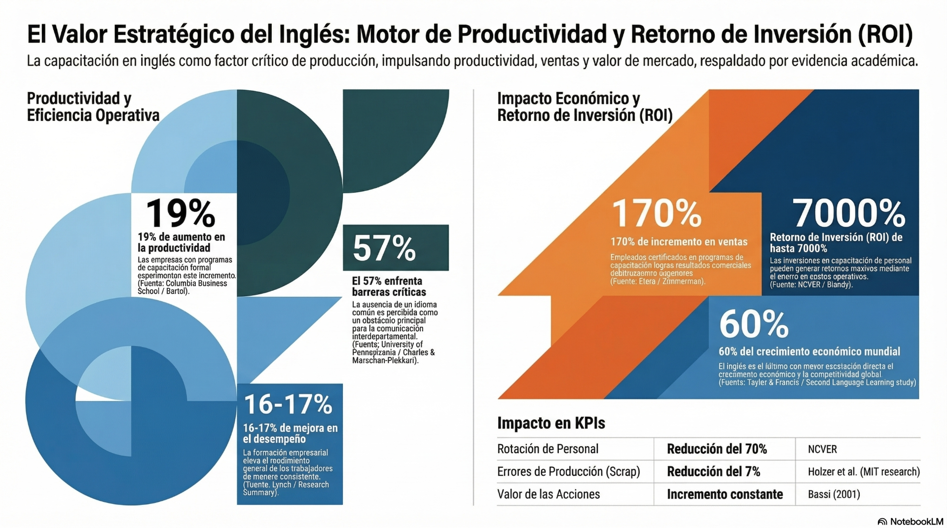 Las empresas que invierten en el desarrollo de habilidades de comunicación —especialmente en inglés— fortalecen su capacidad para colaborar internacionalmente, tomar decisiones más rápidas y operar de manera más eficiente.